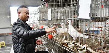 近日,走進山東省菏澤市鄄城縣臨濮鎮小屯村天一家禽養殖場,負責人王俊生正給鴿子添喂飼料。養殖棚內,一只只羽毛色澤艷麗的鴿子精神抖擻,爭先恐后地啄食著鴿糧,“咕咕&rd