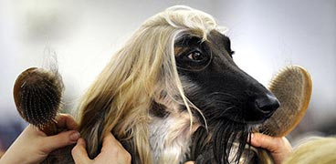 10月17日,在德國(guó)多特蒙德舉行的狗和馬動(dòng)物節(jié)上,人們給一只阿富汗獵犬梳理毛發(fā)。這次的動(dòng)物節(jié)有來(lái)自世界各地大約8000只純種狗參加10月17日到19日舉行的比賽,預(yù)計(jì)觀眾將達(dá)到