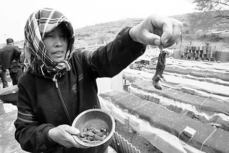圖片說明:養殖場的女主人向記者展示貂崽的尸體。