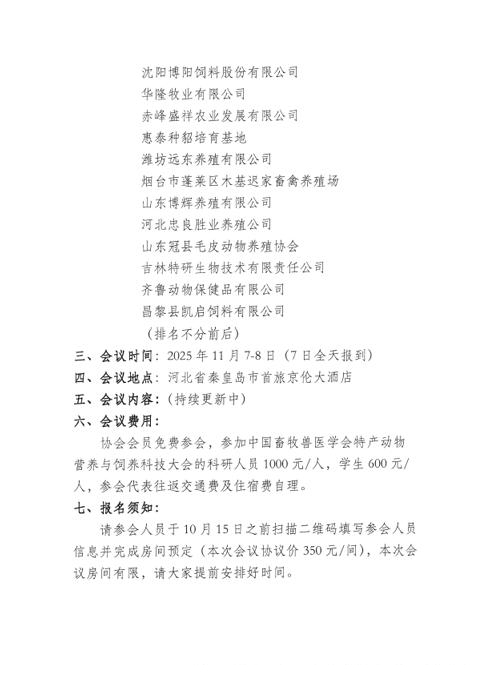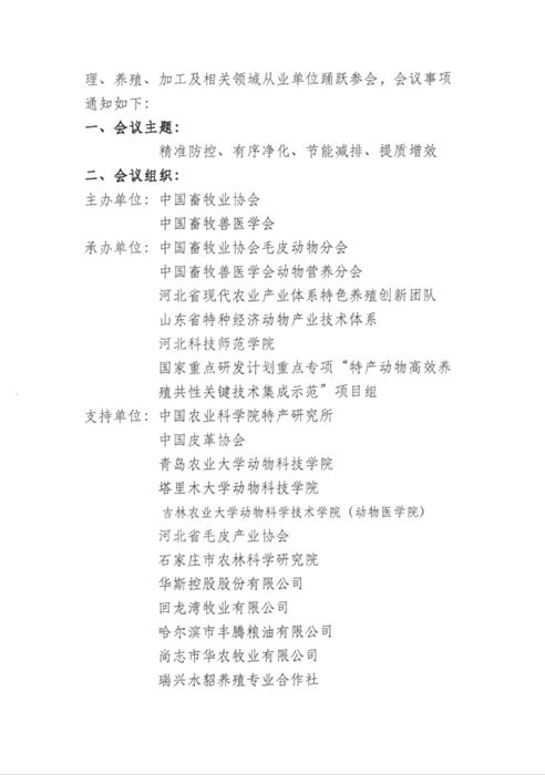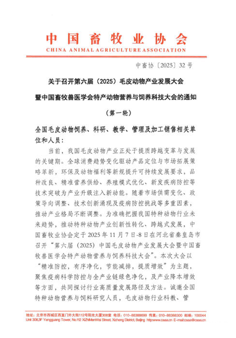 關于召開第六屆(2025)毛皮動物產業(yè)發(fā)展大會暨中國畜牧獸醫(yī)學會特產動物營養(yǎng)與飼養(yǎng)科技大會的通知