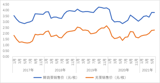 監(jiān)測企業(yè)鮮鴿蛋平均價(jià)格為3.8元/枚,光蛋為2.3元/枚,價(jià)格環(huán)比持平。從結(jié)構(gòu)上看,鮮鴿蛋價(jià)格最高為6.5元/枚,光蛋最低為1元/枚。