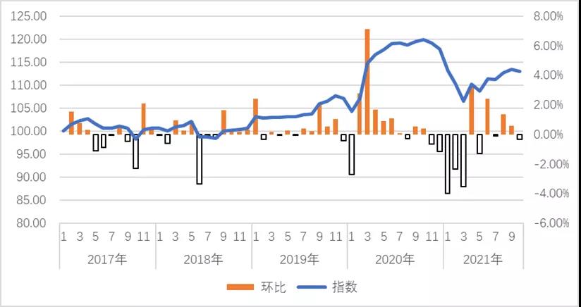 圖1 產鴿存欄指數(以2017年1月產能為100)與環比波動