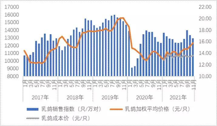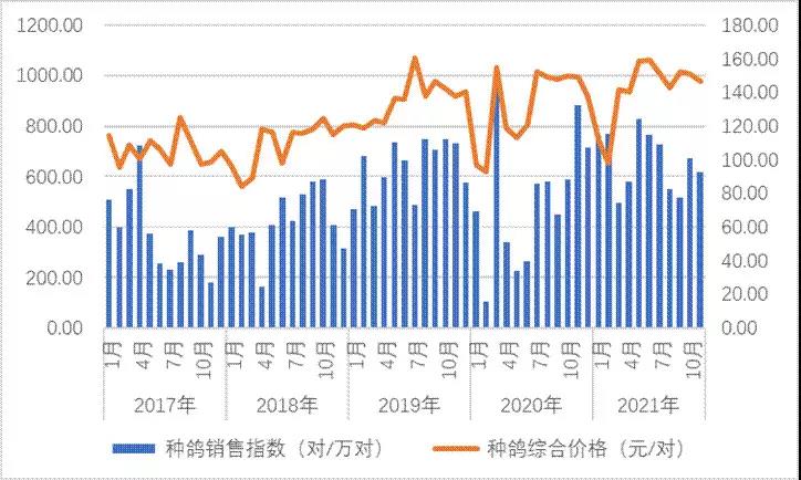 圖1 產鴿存欄指數(以2017年1月產能為100)與環比波動