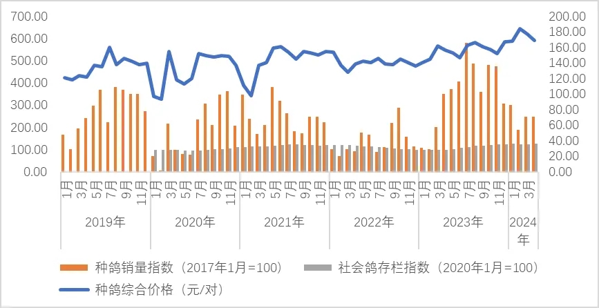 注:社會鴿存欄指數是派生指標,用來反映社會面存欄情況,該指標尚在構建完善當中