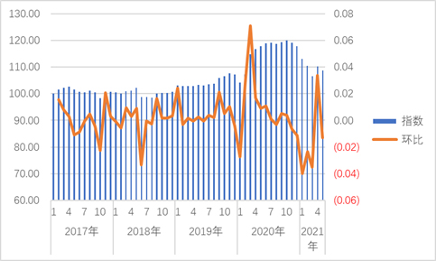產(chǎn)能再次下調(diào) 5月份,監(jiān)測企業(yè)種鴿存欄指數(shù)為105.74,環(huán)比下跌約1%,這個降幅從近四年看并不大。從同比看,本月產(chǎn)能指數(shù)與2017-2019年相比仍比較高。從企業(yè)結(jié)構(gòu)看,企業(yè)產(chǎn)能變