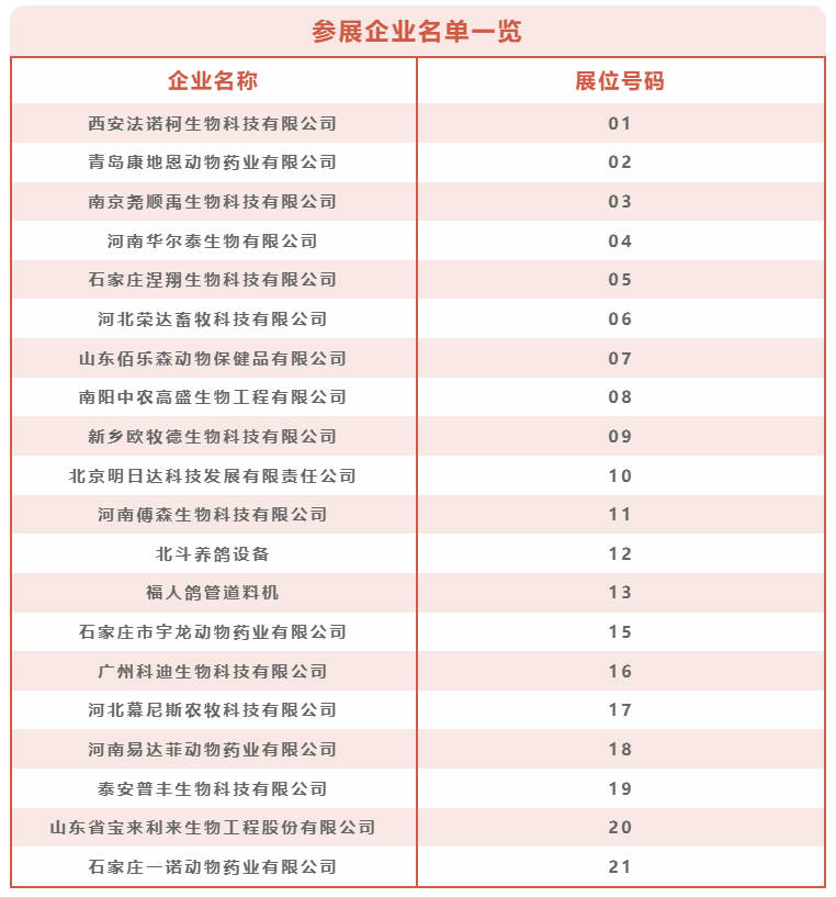 參展企業名單 | 2025“山河四省”鴿業發展大會暨第十屆肉鴿交流研討會