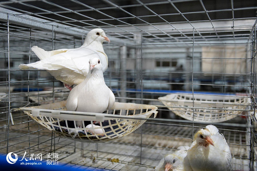 人民網(wǎng)安慶11月27日電(記者苗子健)11月25日,望江縣涼泉鄉(xiāng)團(tuán)山村徐上組標(biāo)準(zhǔn)化鴿舍內(nèi),村民徐訓(xùn)桃按下按鈕,自動(dòng)喂料機(jī)沿著軌道緩緩移動(dòng),鴿子從鴿籠里探出腦袋啄食料槽里的玉米