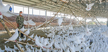 首先抓好“三降” 01降低溫度 鴿羽毛稠密,無汗腺,體內(nèi)熱量散發(fā)困難,因而高溫環(huán)境影響肉鴿的生長(zhǎng)。 必須采取有效措施進(jìn)行降溫: 1、將房頂和南側(cè)墻涂