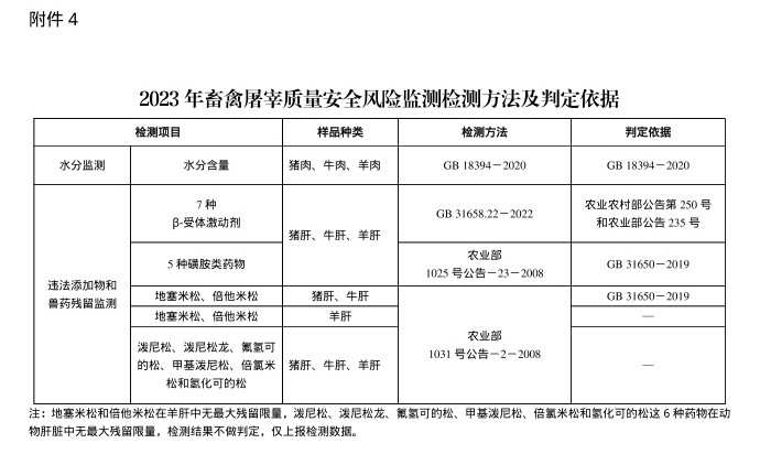 4. 2023年畜禽屠宰質量安全風險監測檢測方法及判定依據