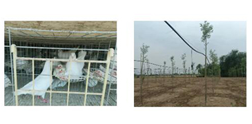 近日,在山東省濱州市英才新五村的肉鴿養殖基地周邊,濱城區第七批派駐濱北街道第一書記武洲和項目負責人申云霞正在發芽狀況好的旱柳周邊插種著剛剛新進的金蟬卵枝。這是充