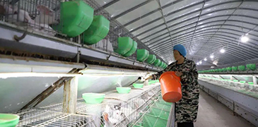 炎炎夏日,酷暑難耐。來到太行山下的河南省沁陽市西向鎮西向四街村澤豐養殖專業合作社的兔舍里,卻頓感涼風習習。飼養員靳小利在一排排兔籠間穿梭,給兔子投喂食材。飼養員靳