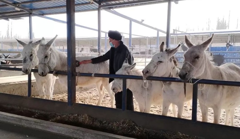 走進新疆墨玉縣扎瓦鎮托格拉亞村的畜牧養殖農民專業合作社,一匹匹青色、白色的毛驢煞是吸引人的眼球。 墨玉縣扎瓦鎮托格拉亞村的畜牧養殖農民專業合作社成立于2012年
