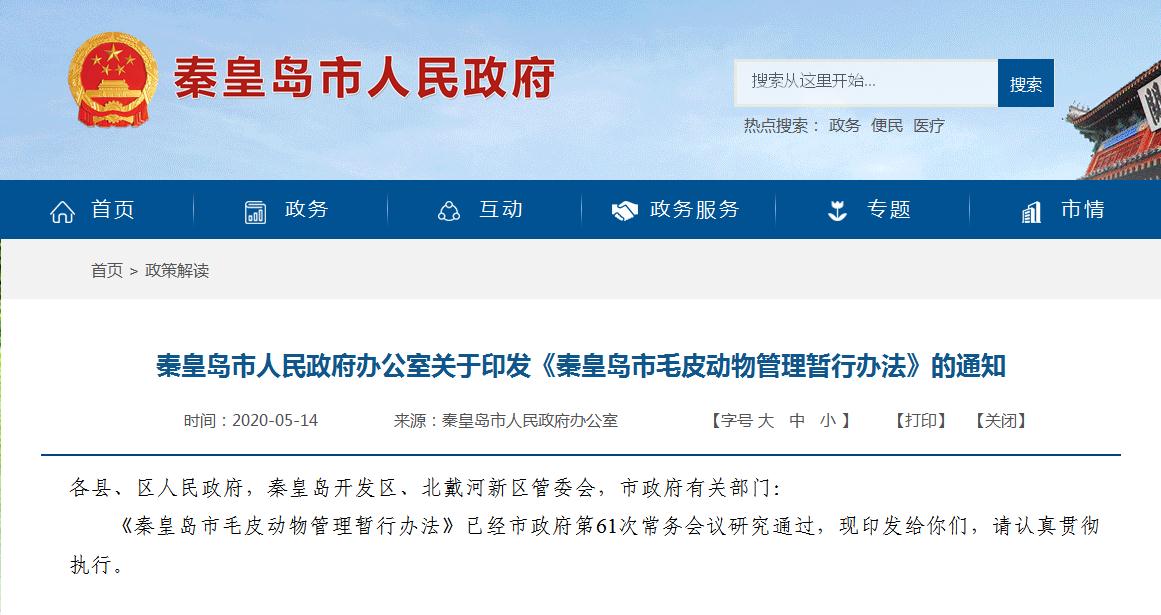 各縣、區(qū)人民政府,秦皇島開(kāi)發(fā)區(qū)、北戴河新區(qū)管委會(huì),市政府有關(guān)部門: 《秦皇島市毛皮動(dòng)物管理暫行辦法》已經(jīng)市政府第61次常務(wù)會(huì)議研究通過(guò),現(xiàn)印發(fā)給你們,請(qǐng)認(rèn)真貫徹執(zhí)行。