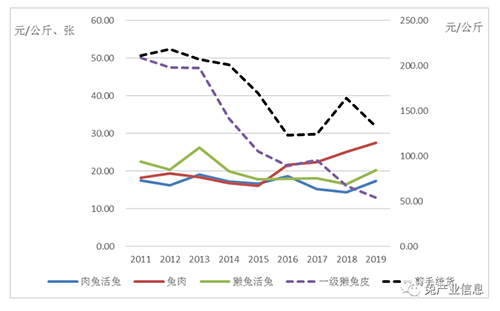 圖1 2011年—2019年兔及兔產品平均價格走勢