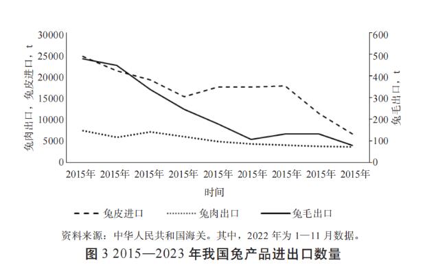 2023年,新冠肺炎疫情對兔產業的影響逐步淡化,但是受極端天氣多發、國際局勢多變、能源和糧食市場波動等因素的影響,一些行業又進一步受到新因素的沖擊,相對而言,兔產業所受的影響較小,基本延續了上一年的增長趨勢,但增速有所放緩。