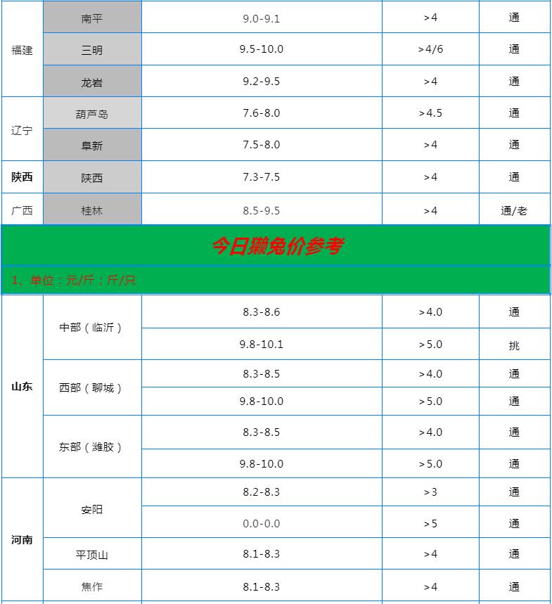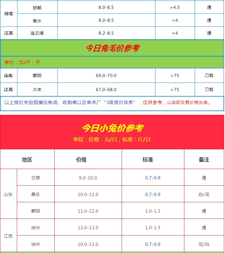 全國各地兔價行情信息快報!(2022.5.26)