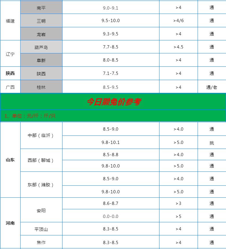 全國各地兔價行情信息快報!(2022.6.10)