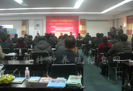 以“行業自醒,找準定位,再圖發展”為主題。上午的會議由中國特種養殖信息網網站總監靳國慶主持。會議首先宣布了網站“全國野豬購銷聯盟”的正式成立,靳國慶向與會代表介紹了聯盟成立的背景以及人員篩選的整個過程。同時靳國慶向聯盟會長劉斌授盟,并由會長劉斌和靳國慶共同向推選的各位副會長授牌和頒發證書。在穿插了英國永農公司東北區崔團總經理“野豬綠色養殖”和北京華夏康源公司夏彪總經理的“發酵床在野豬行業的應用”專題講座后,靳國慶做了“樹立三個意識”的主題演講。他講到,作為特養行業的分支,野豬行業同仁應該樹立“行業、責任、誠信”三種意識,同時提出“只有穩定發展的行業,才會出現眾多健康發展”的理念,對野豬行業的發展現狀和前景發表了自己的看法。